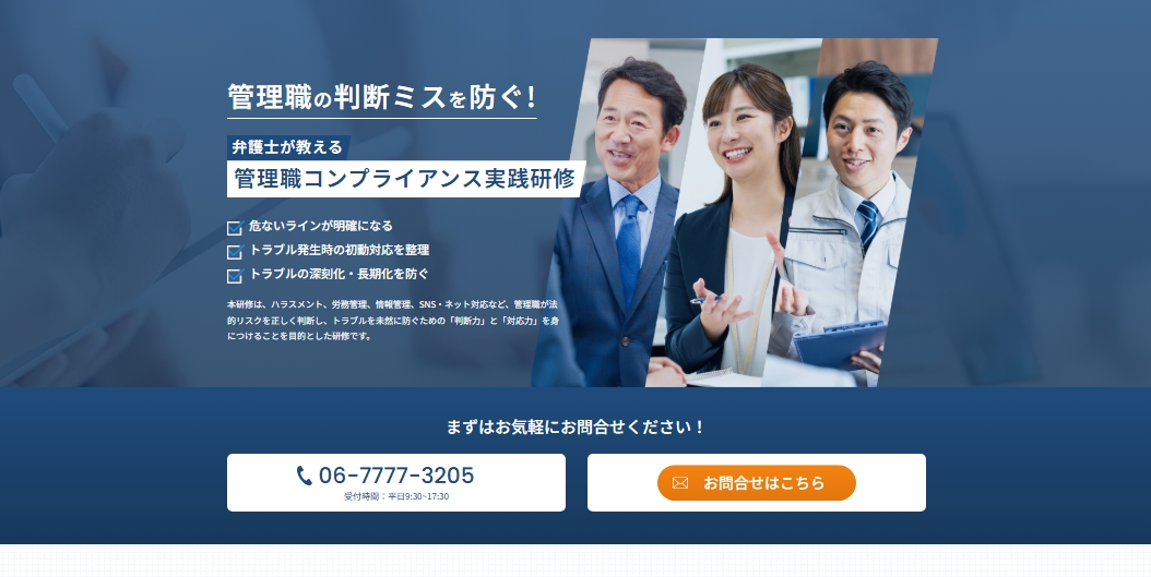 弁護士法人かける法律事務所は、このたび、企業向けに提供している管理職向けコンプライアンス研修サービスについて、内容や導入方法をまとめた専用WEBページを公開いたしました。